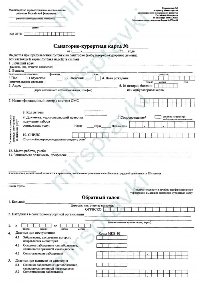 Санаторно-курортная карта 072 у — что это и зачем она нужна?